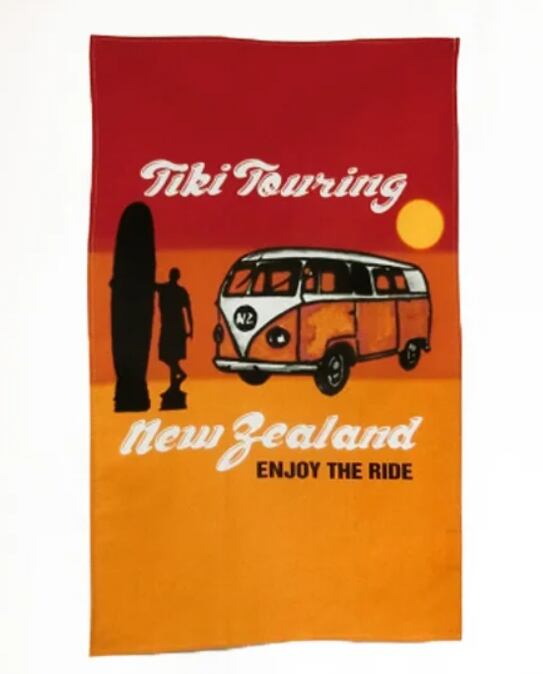 オレンジ色の可愛いコンビと、背景のグラデーションがきれいなティータオルです。