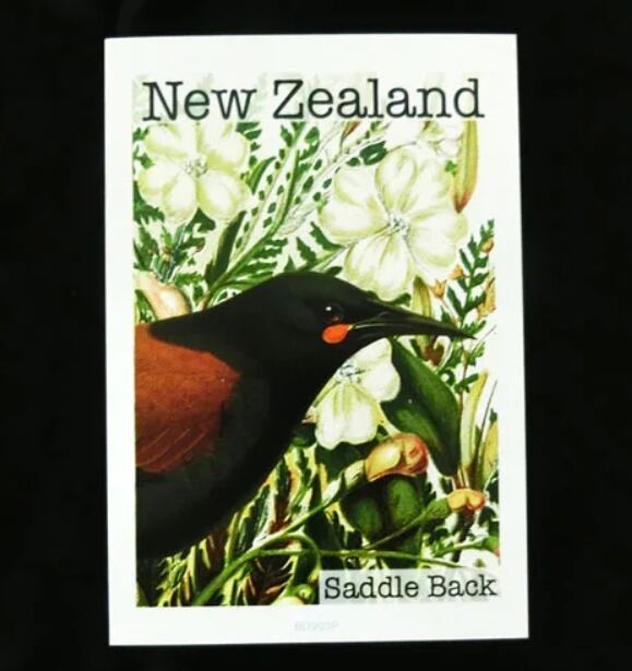 ニュージーランドのネイティブバード「Saddle Back」が描かれポストカードです。