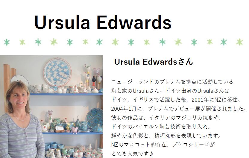 ニュージーランドのBlenheimを拠点に活動している陶芸家「Ursula Edwards」さんの