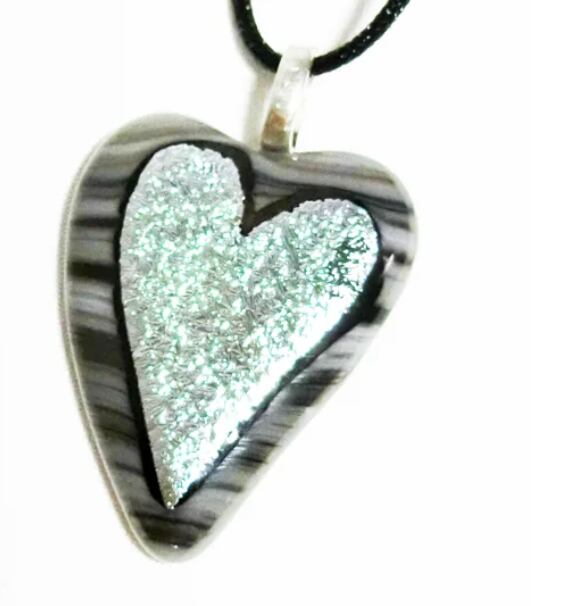 周りは黒とグレイのストライプ模様、中のハート部分はシルバーの素敵なデザインです♪