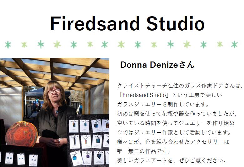 クライストチャーチ在住のガラスジュエリー作家ドナさんの「Firedsand Studio」