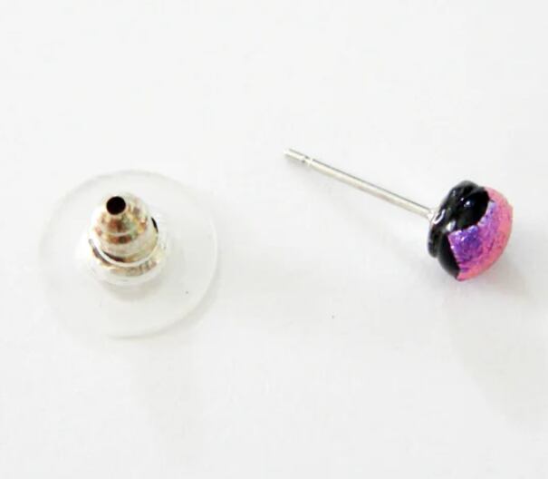 黒ベースのガラスにピンク色でコーティングされています。表面がザラザラしています。