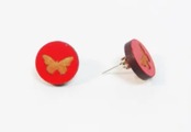 鮮やかな赤と木の温もりが美しいウッドピアス。