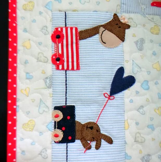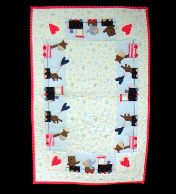 可愛い動物たちが汽車に乗っている楽しいパッチワークキルト♪