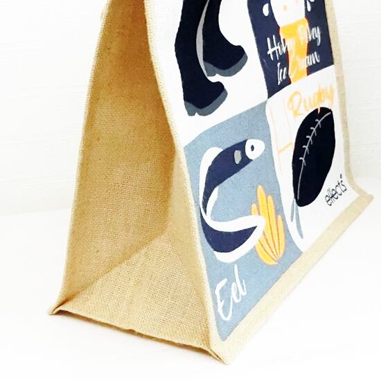 環境にやさしい素材であるジュートを使用しており、エコバッグを持つことで環境への負荷を減らすことができます。しっかりとした素材でできていて、まちが広く重い荷物でも安心して持ち歩くことができます。お買い物にピッタリです!